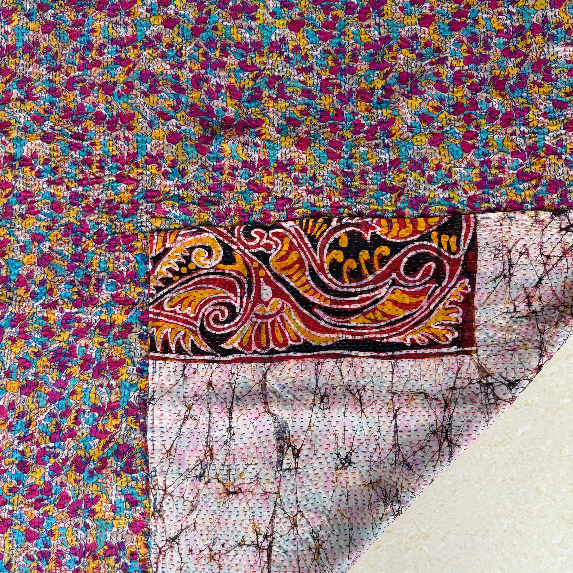 Hand sourced in Jaipur and Delhi, our bespoke kantha scarves are two pieces of vintage saris bonded together with a traditional kantha stitch. We select the best prints and colours to create a truly unique and bespoke accessory that you'll want to wear time and time again. As these pieces are recycled, they may come with slight imperfections but that's all part of their beauty!