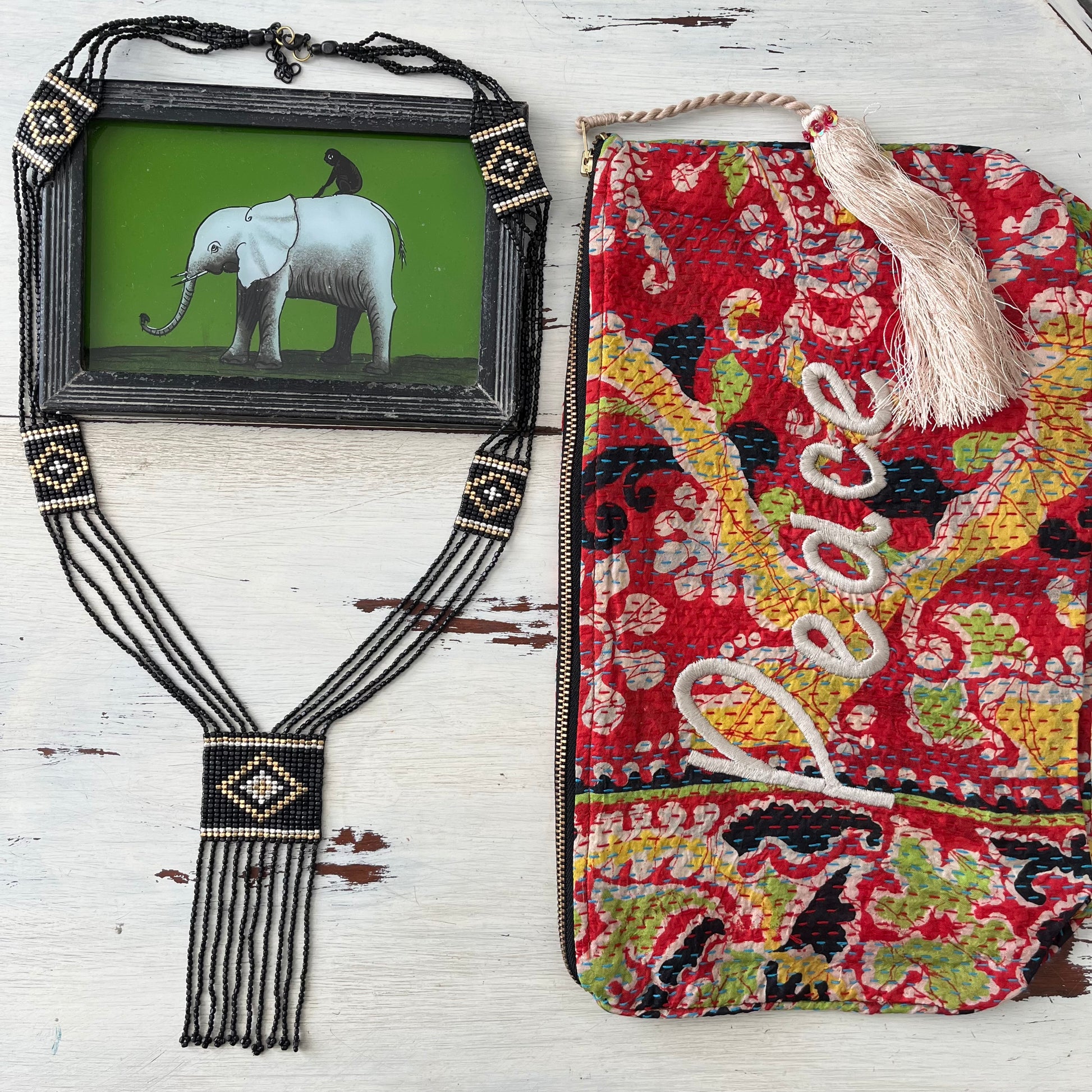These pretty boho beaded necklaces are all handmade in Northern India. They have a macrame feel to them and look great layered over a plain tee or pretty kaftan, wear with love.