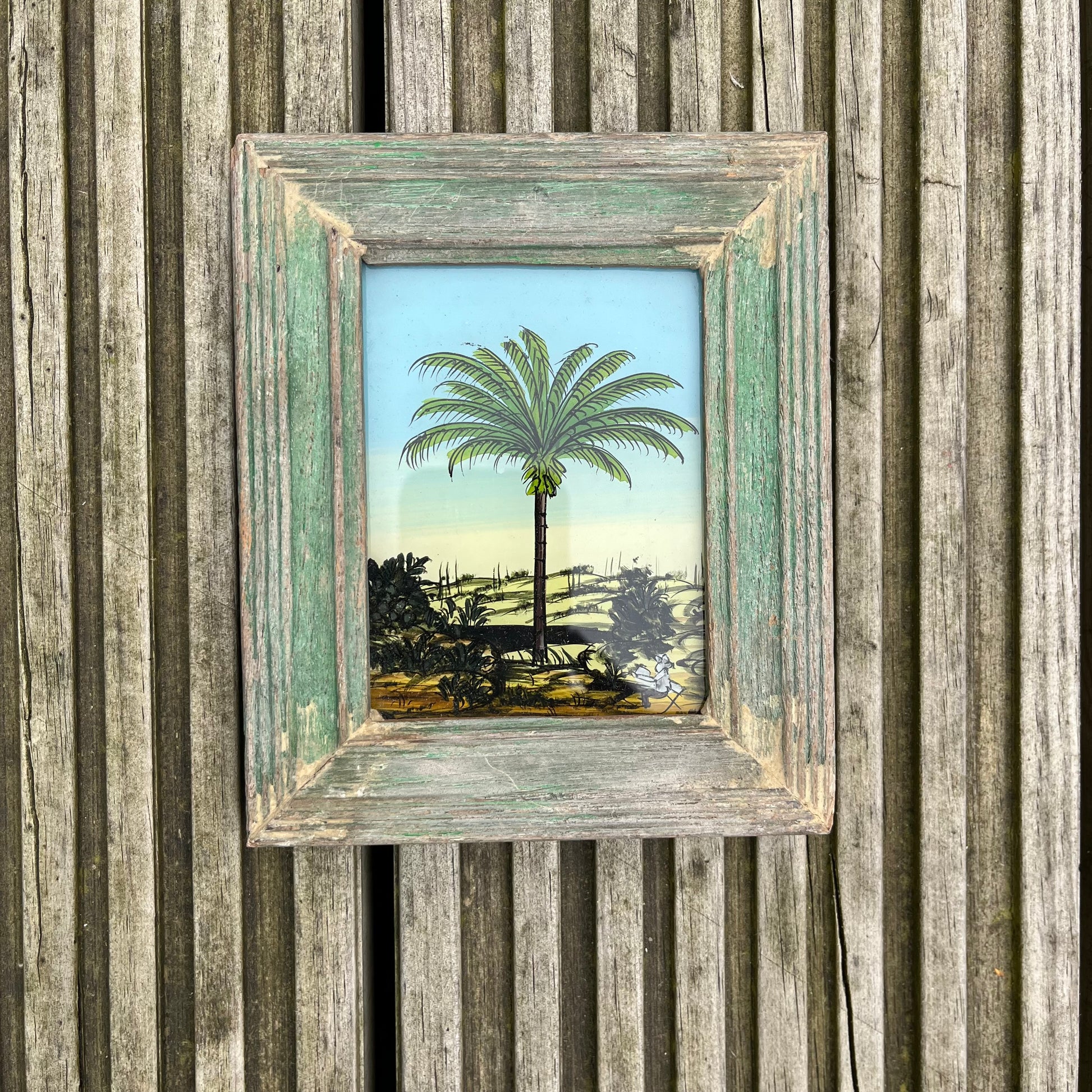 *Please note that these are all hand painted pieces of art, each is unique and one-of-a-kind. The frames and glass are vintage so sizes stated are approximate and expect signs of vintage wear, which add to their charm. Please ensure you study the photographs carefully and make note of the size stated before purchasing.