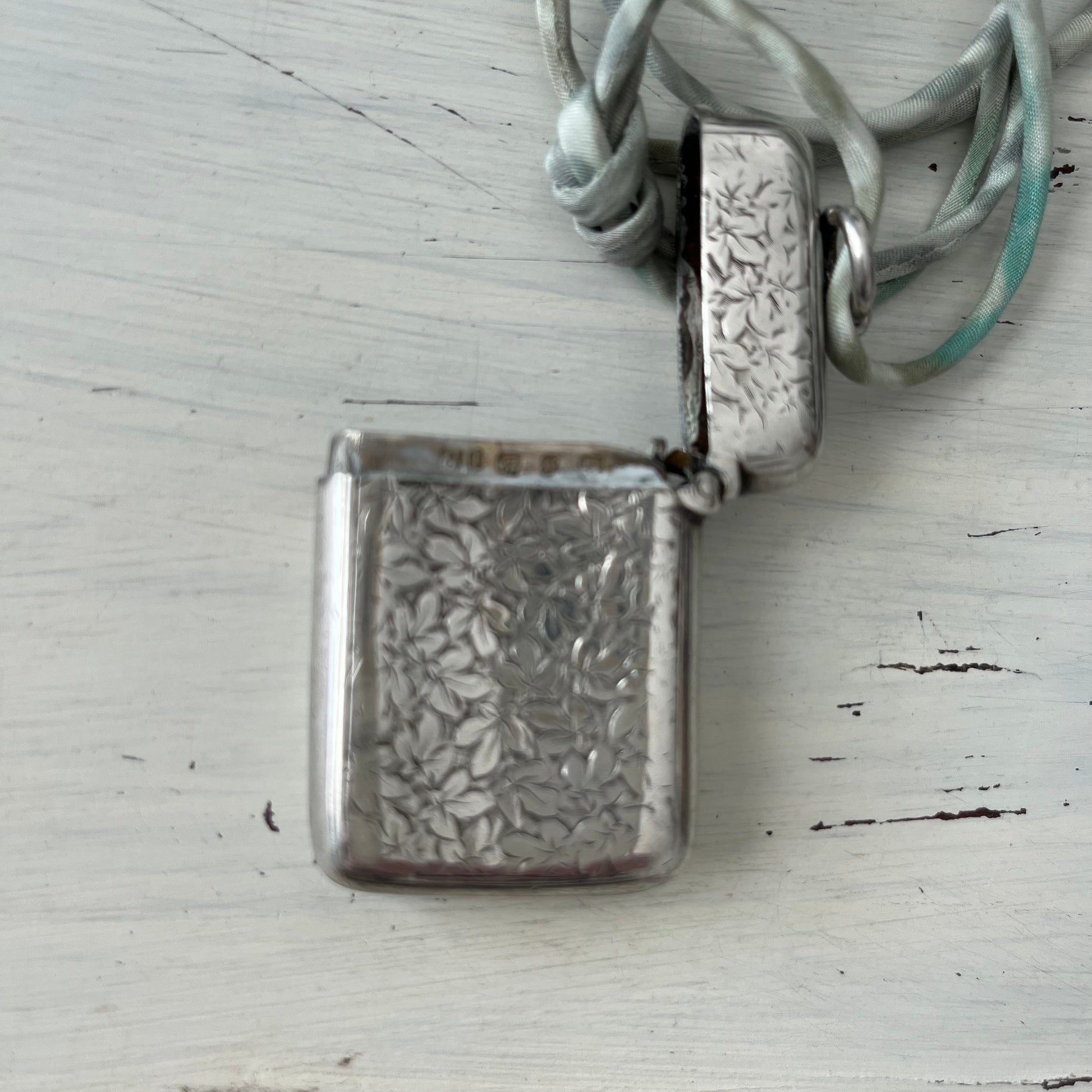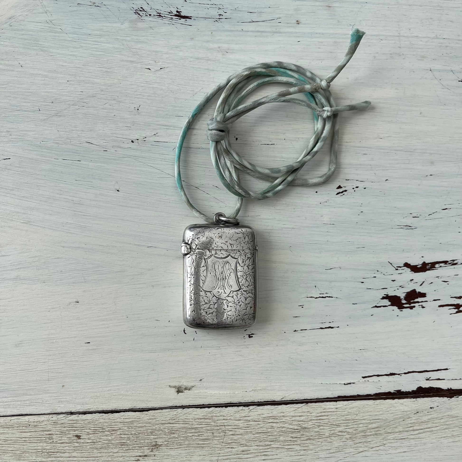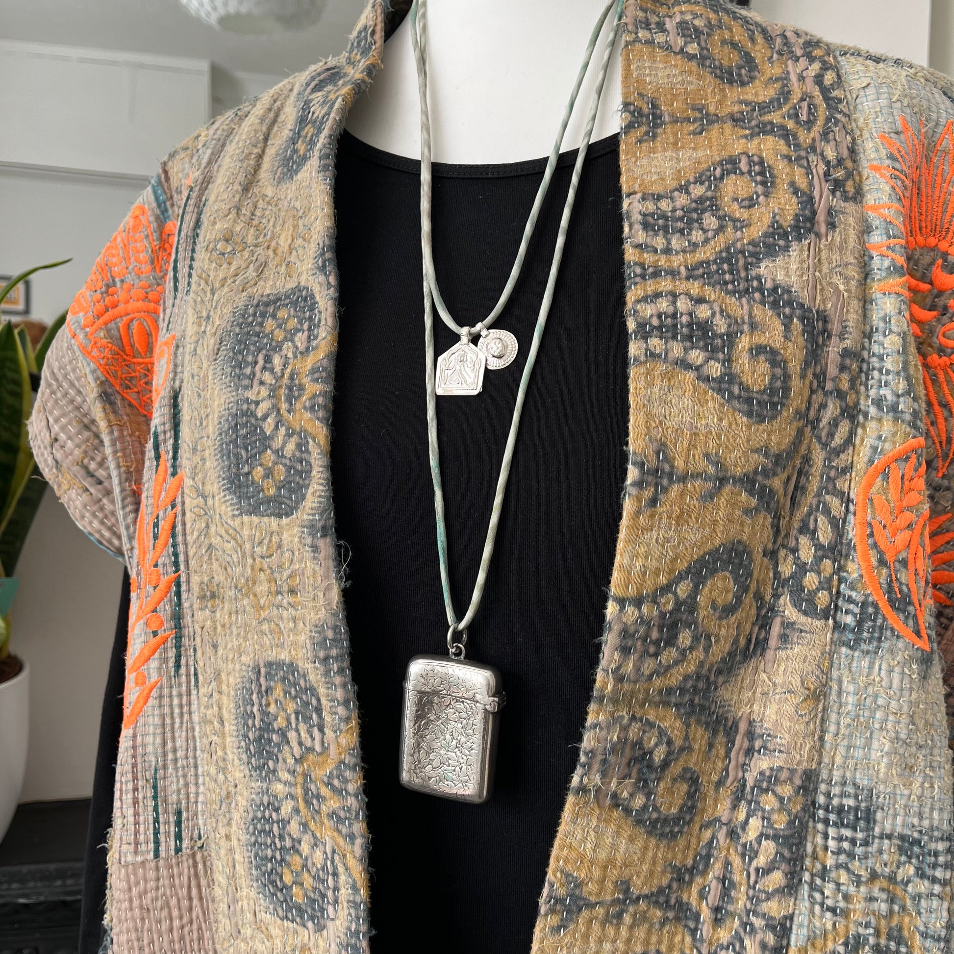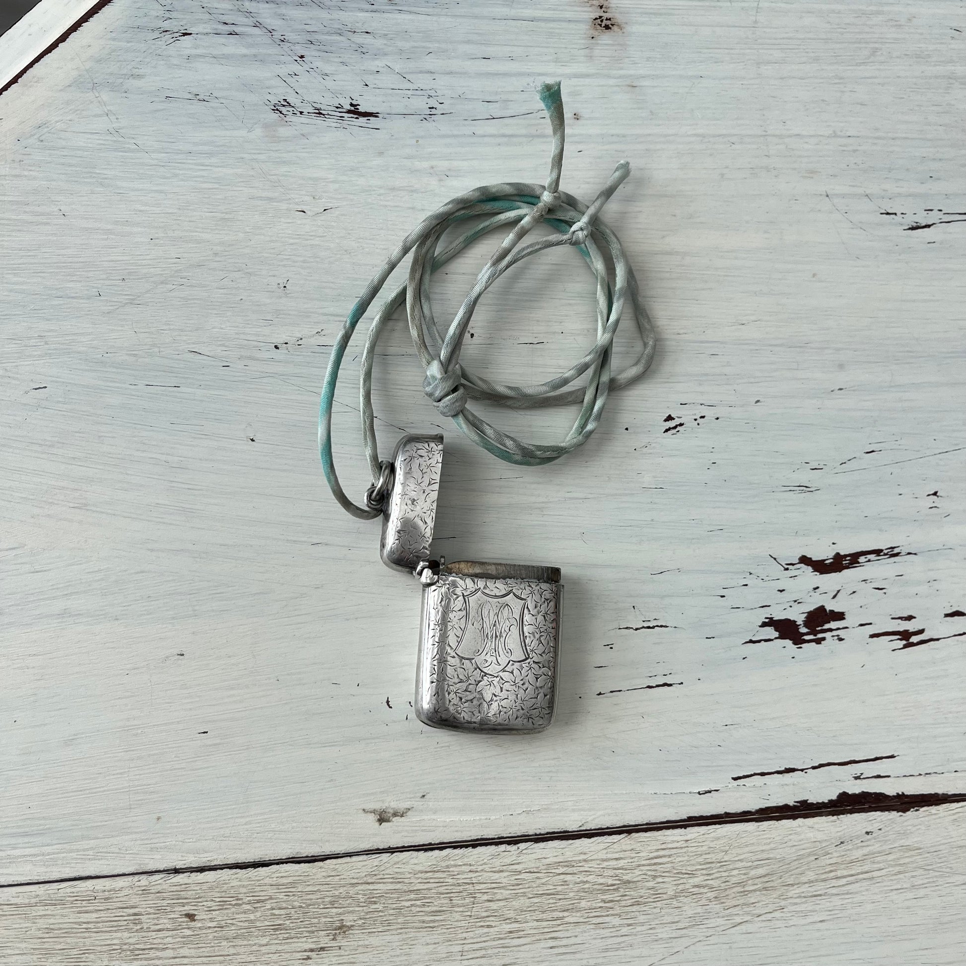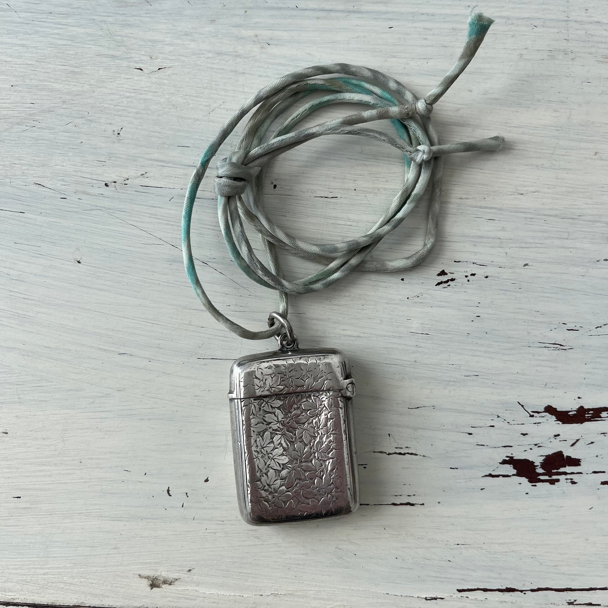 These cute little pendants are vesta cases from the Victorian era. They were used to hold matches back then, so each has a flip-top lid.