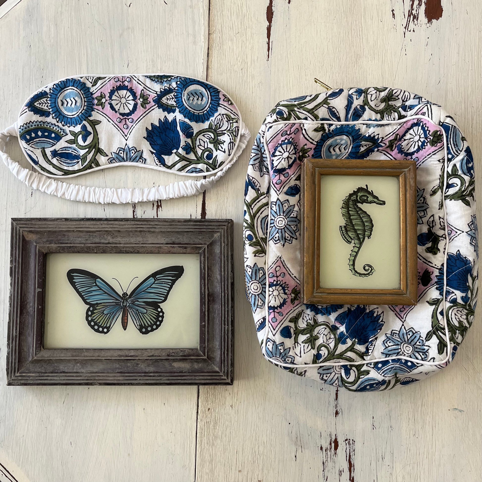 Our beautiful Indian glass paintings are back this season! Designs include hand painted Flora, Marine Life, Birds, Insects and Animals. Each have their own, unique vintage frame and have been beautifully painted by hand on the reverse of the glass.